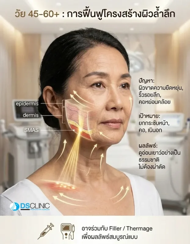 วัย 45 – 60 ปีขึ้นไป: การฟื้นฟูโครงสร้างผิวอย่างลํ้าลึก