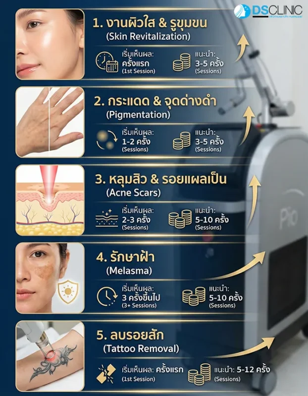 จำนวนครั้งในการทำ Pico ไม่ได้เท่ากันทุกคน เพราะขึ้นอยู่กับ “ปัญหาผิว” ของแต่ละบุคคล โดยทั่วไปสามารถแบ่งได้ดังนี้