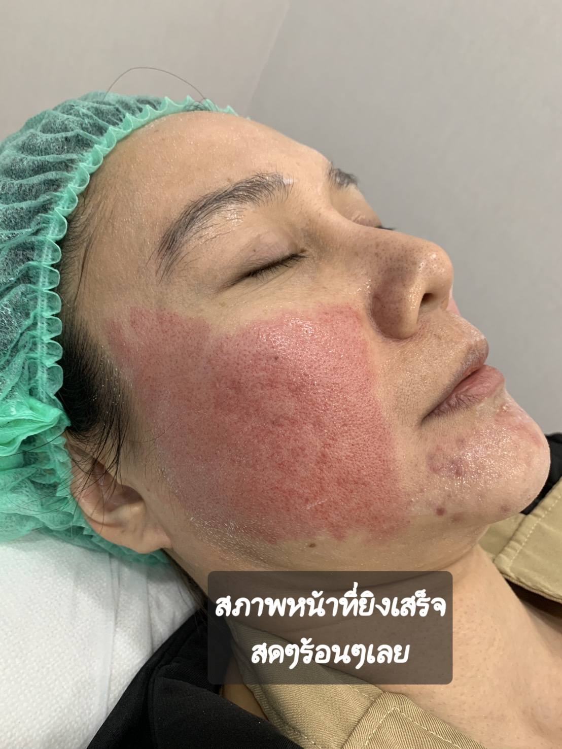 เพราะตอนทำจะมีลมเย็นๆเป่า และได้แปะยาชาด้วยค่ะ หน้าเราจะแดง 3-5 วัน หลังจากนั้นจะหายแดง ตกสะเก็ด ดูหน้าเรียบเนียน ใสขึ้น แต่หลุมสิว คุณหมอบอกว่าต้องทำต่อเนื่อง 5-6 ครั้ง แล้วแต่สภาพผิวหน้าแต่ละคน