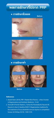 เพราะฉะนั้นเมื่อนำมาใช้ในทางความงาม ก็สามารถนำมาบำรุงผิวในคนไข้ ที่ต้องการการเพิ่มคอลลาเจนให้ผิวพรรณ ให้สวยสดใสได้ และเพิ่มความยืดหยุ่น หรือว่าเพิ่มการเลี้ยงของตัวหลอดเลือดของเราเอง ให้แข็งแรงและมีความยืดหยุ่นเพิ่มมากขึ้น รวมถึงสามารถรักษาฝ้าได้อย่างปลอดภัย และยังช่วยในการรักษาหลุมสิว รูขุมขนกว้างอีกด้วย จึงสามารถสรุปได้ว่า PRP ในทางความงาม เมื่อทำแล้วมีคุณสมบัติดังนี้คือ