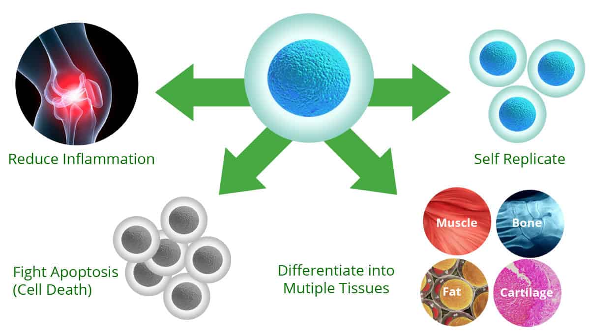 ดังนั้นจึงสามารถที่จะสรุปได้ว่า ในการใช้สเต็มเซลล์เพื่อการรักษามีประสิทธิภาพที่ดี คือช่วยซ่อมแซมหรือแทนที่เซลล์ที่เสื่อมสภาพ และยังทำให้เซลล์ยังคงทำงานได้อย่างมีประสิทธิภาพ รวมถึงช่วยลดการอักเสบ โดยไปชะลอการทำงานของเซลล์เม็ดเลือดขาว ทำให้การอักเสบในร่างกายหรือเนื้อเยื่อลดลง