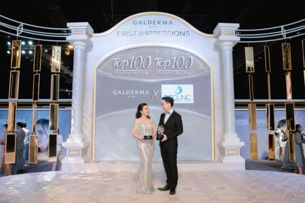 ขึ้นรับรางวัลสุดยิ่งใหญ่ 2 ปี ซ้อน “Top Premium 100 Clinic” 2021 & 2022 จาก บริษัท Galderma Aesthetics Thailand ผู้นำเข้าผลิตภัณฑ์ ฟิลเลอร์ Restylane และ โบทูลินั่มทอกซินอังกฤษ (Dysport)