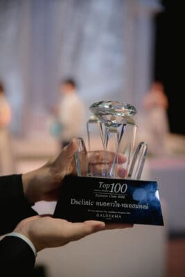 อีกหนึ่งในความสำเร็จที่น่าภาคภูมิใจ DS Clinic ได้รับ รางวัล “Top 100 Exclusive Clinic” 2021 &2022 จาก บริษัท Galderma Aesthetics Thailand แสดงความเป็นเลิศด้านการใช้ผลิตภัณฑ์คุณภาพ มาตรฐาน และความปลอดภัย ด้านเวชศาสตร์ความงาม